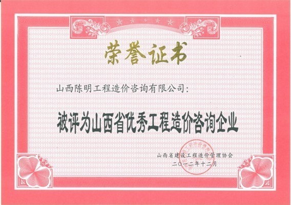 山西省優(yōu)秀工程造價